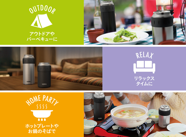 350ml缶をセットするだけでインドアからアウトドアまで大活躍。