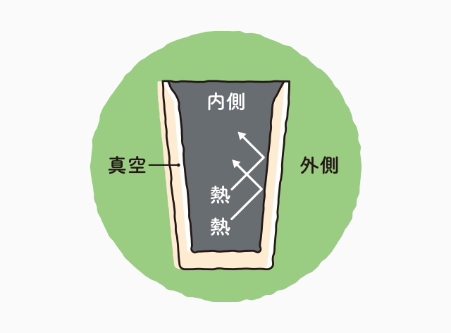 熱々の飲みものを入れても外側が熱くなりません。
