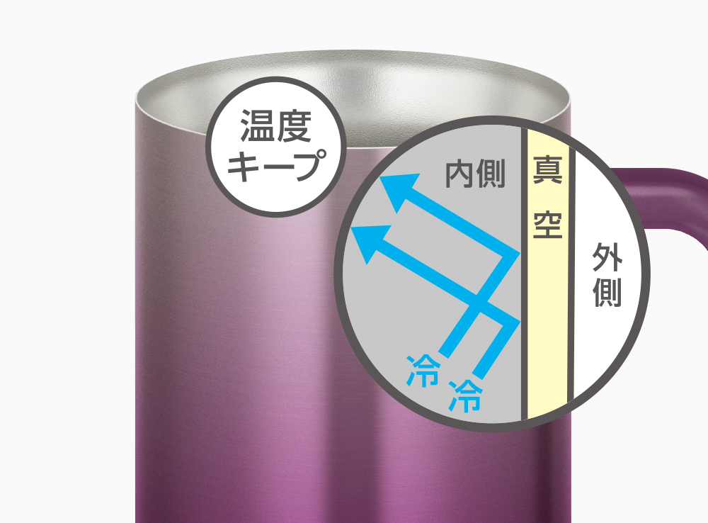 真空断熱構造だから、結露しにくくテーブルを汚しません。もちろん保温もOK。