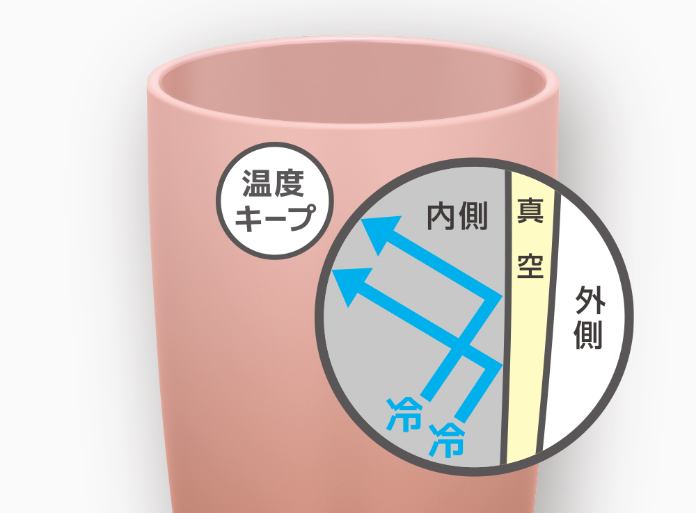 真空断熱構造だから、飲み頃温度をキープ。保温・保冷OK。