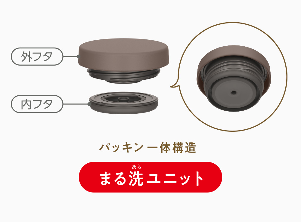 洗う部品は2つだけ!内フタが取りはずしできて洗いやすい