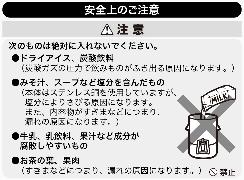 電気などの熱源不要で経済的。冷たい飲みものを入れても結露しにくい。