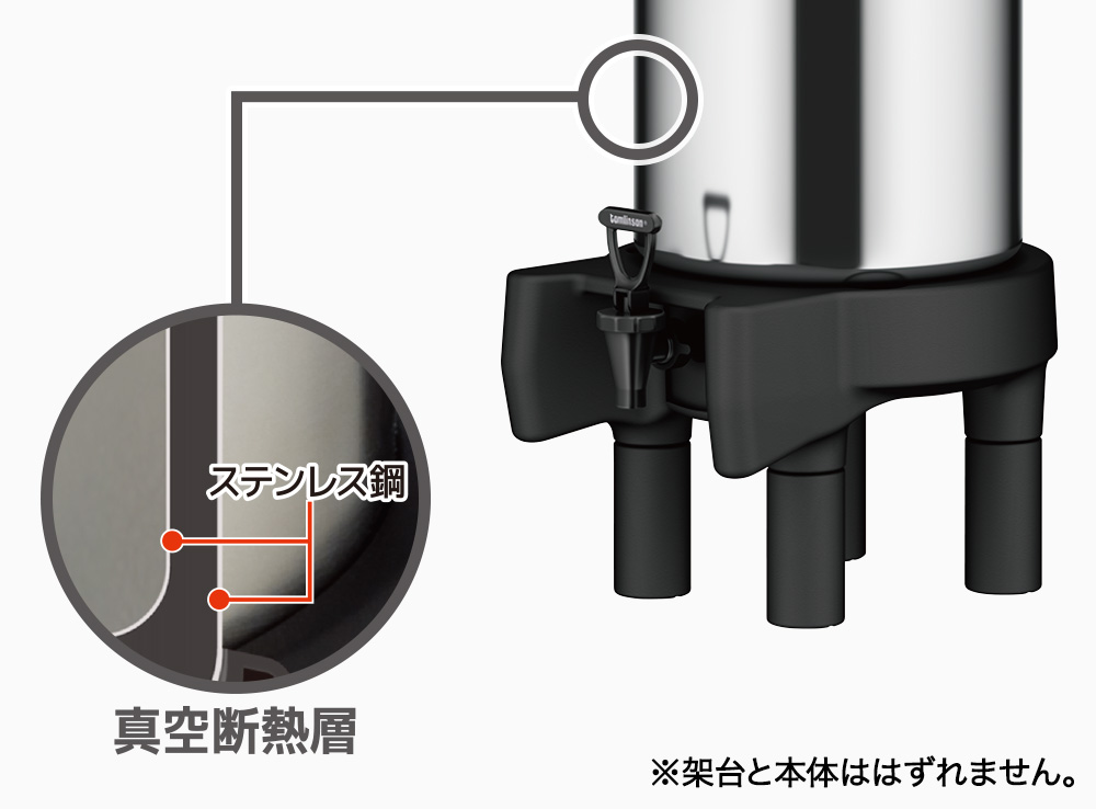 真空断熱構造で高い保温・保冷性能をもったドリンクディスペンサー