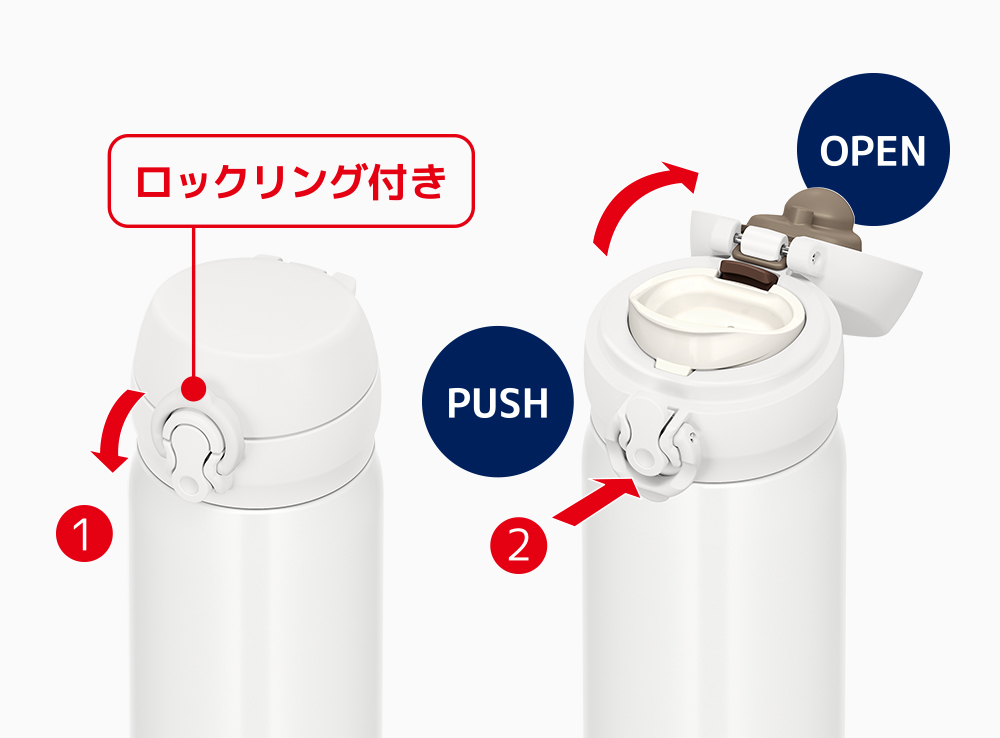 ワンタッチでオープンするせんユニットは、ロックリング付き。