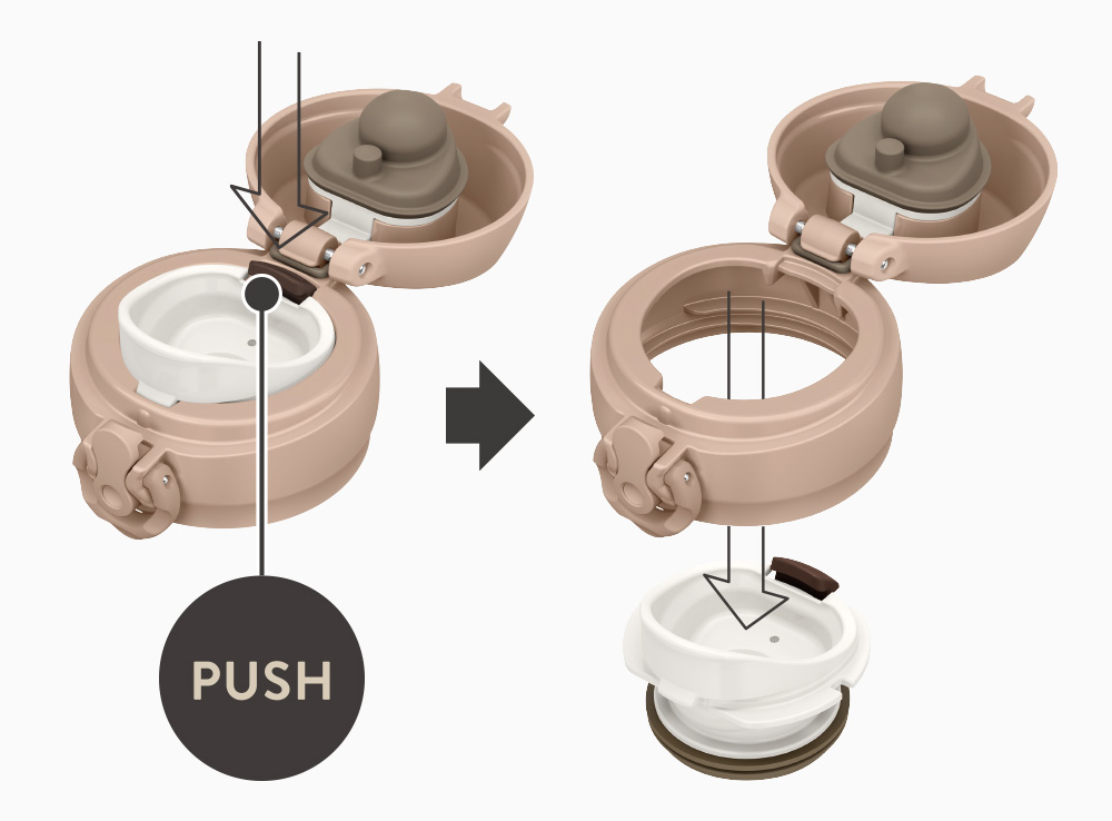 ワンタッチでオープンするせんユニットは、ロックリング付き。