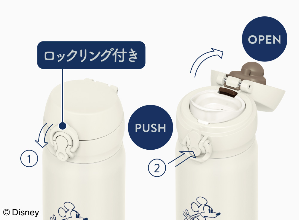ワンタッチでオープンするせんユニットは、ロックリング付き。