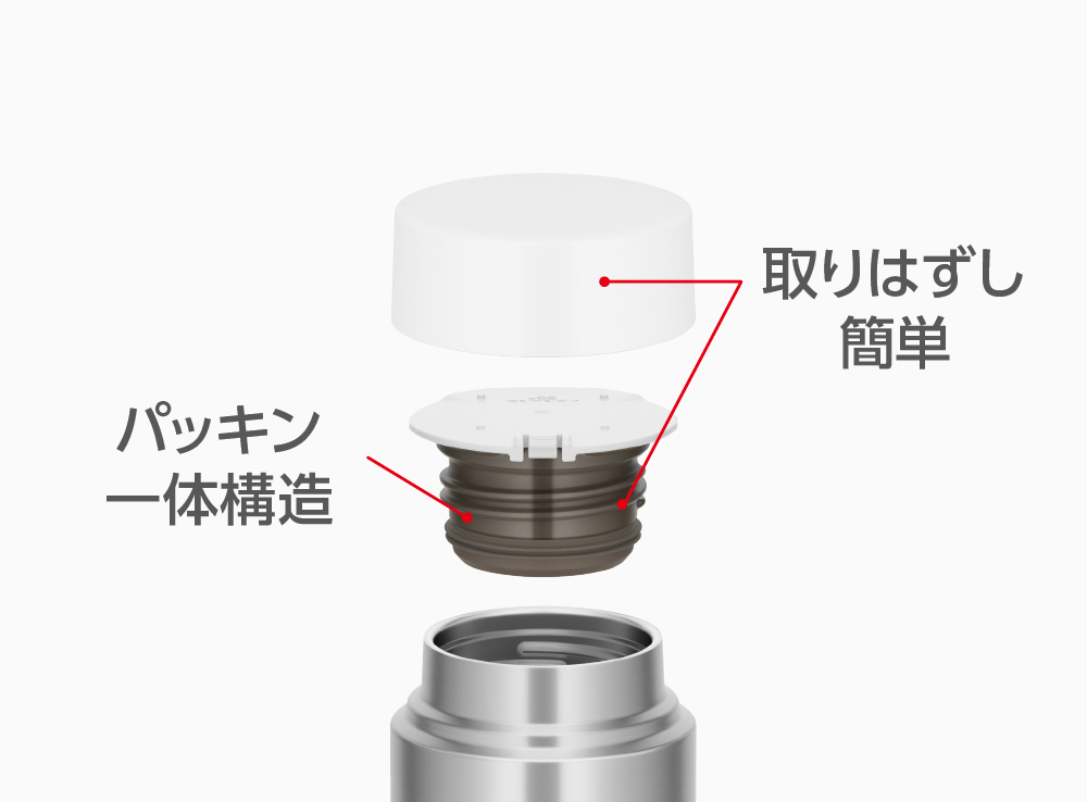 パッキン一体構造でお手入れ簡単