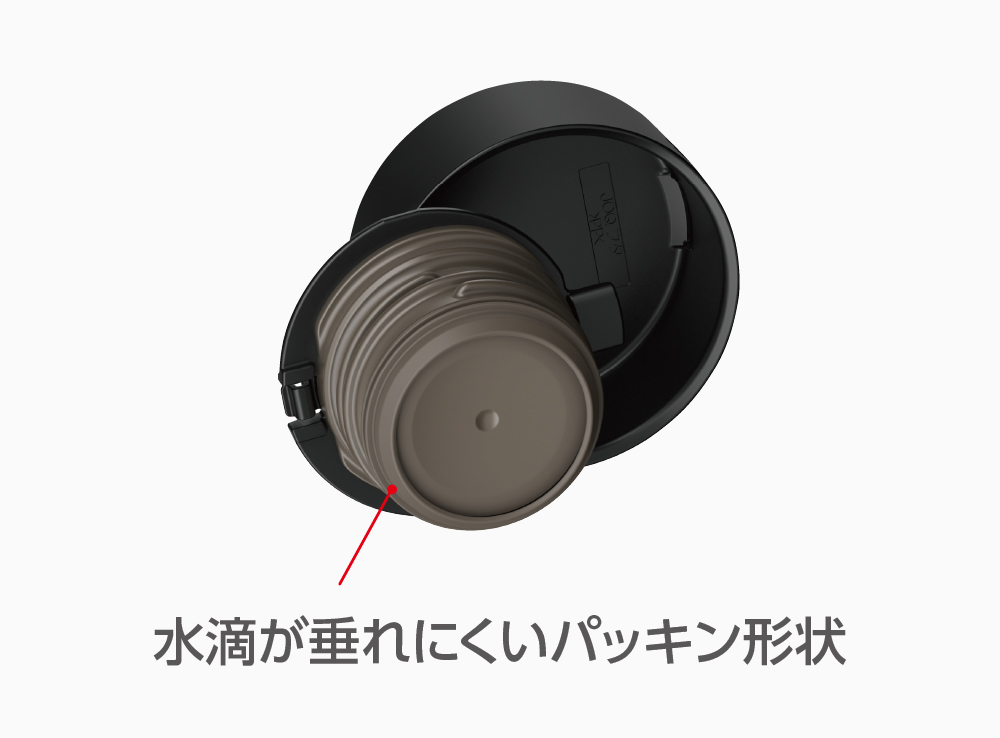 パッキンのすき間に水滴が溜まり、しずくが垂れるのを防ぎます。
