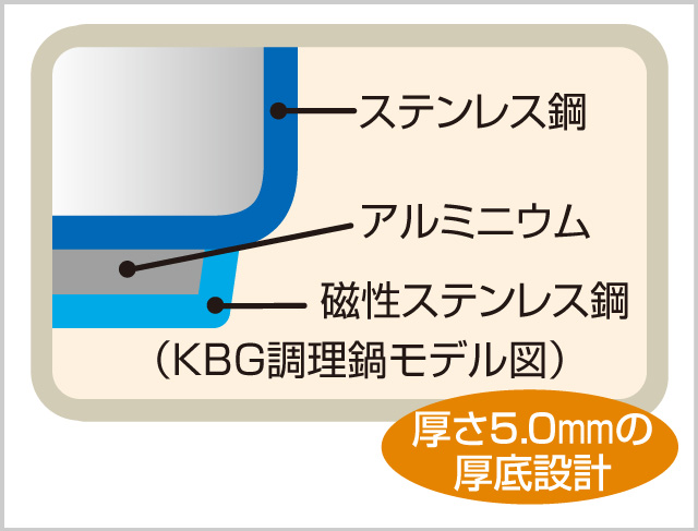 調理鍋の底面は熱が伝わりやすく焦げ付きにくい5.0mmの厚底設計です。(はり底を含む)