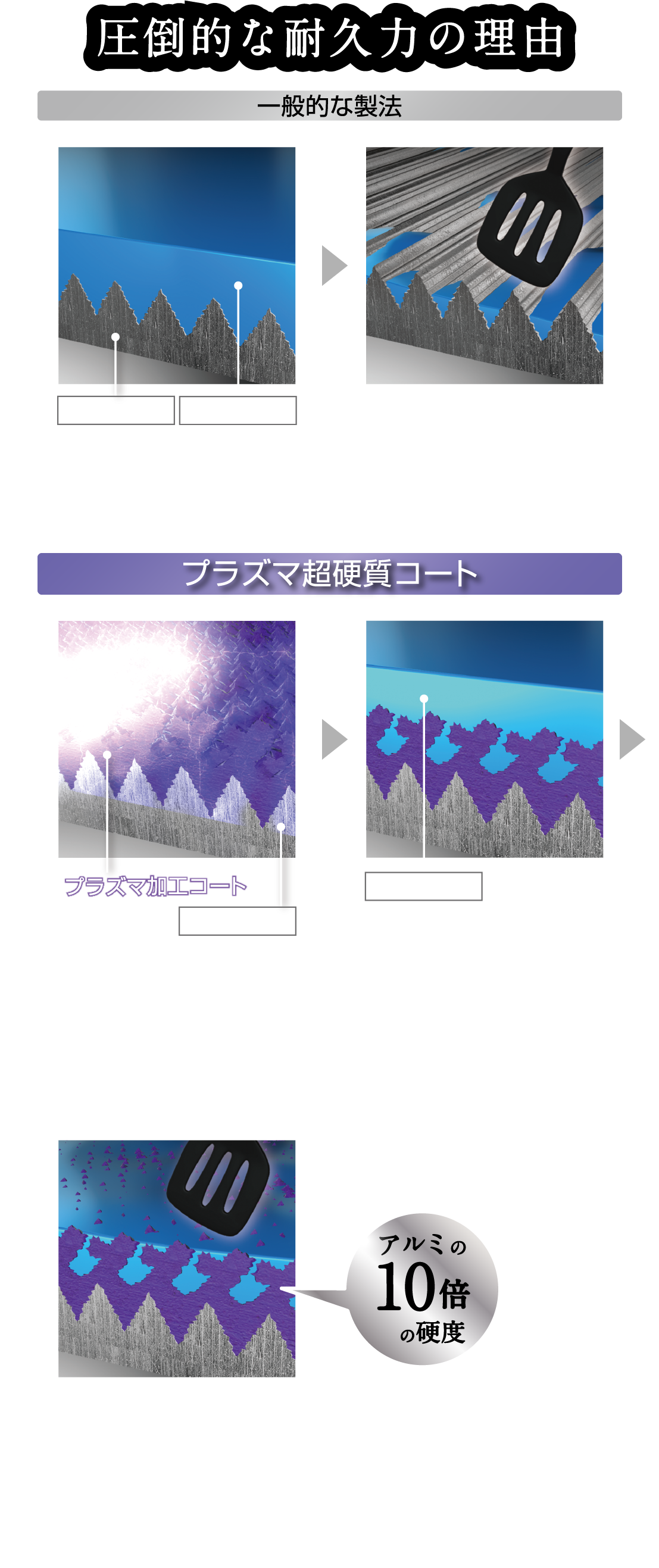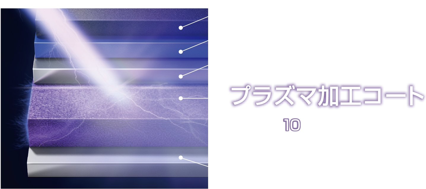 17,000℃※の超高温プラズマジェットでコーティング。抜群の耐久性を実現しました。 ※コーティング時のプラズマジェットの電子温度