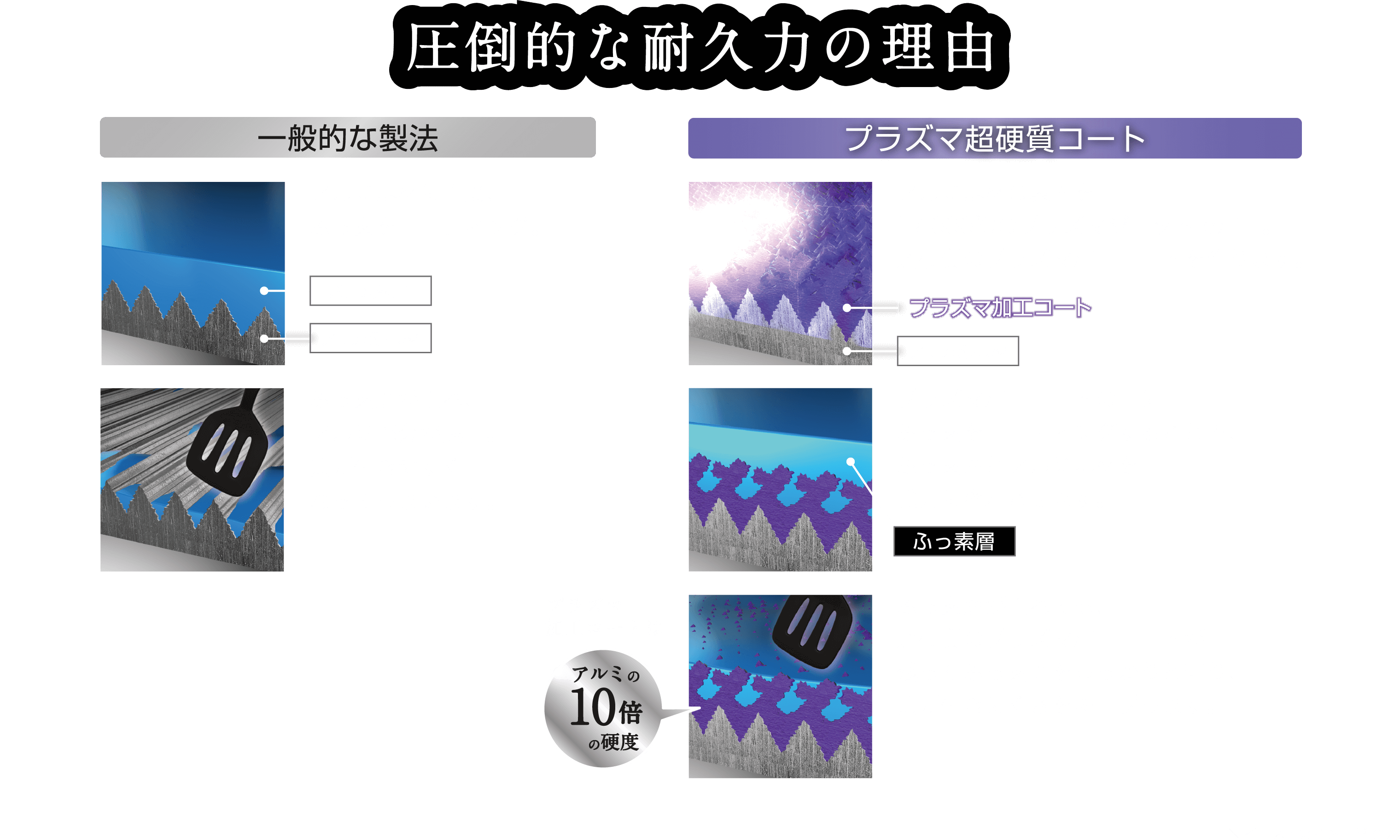 圧倒的な耐久力のあるプラズマ超硬質コートのフライパンシリーズ。