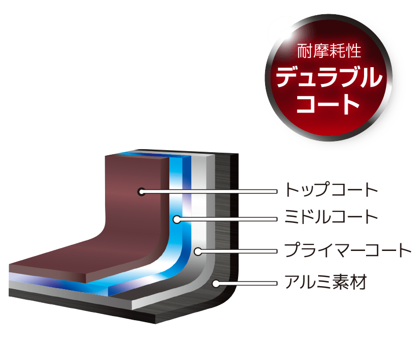 硬質フィラーを配合した、耐久性コーティング。耐摩耗性の高さと、焦げ付きにくさが特長です。