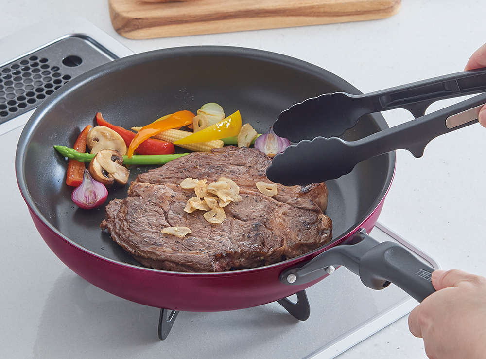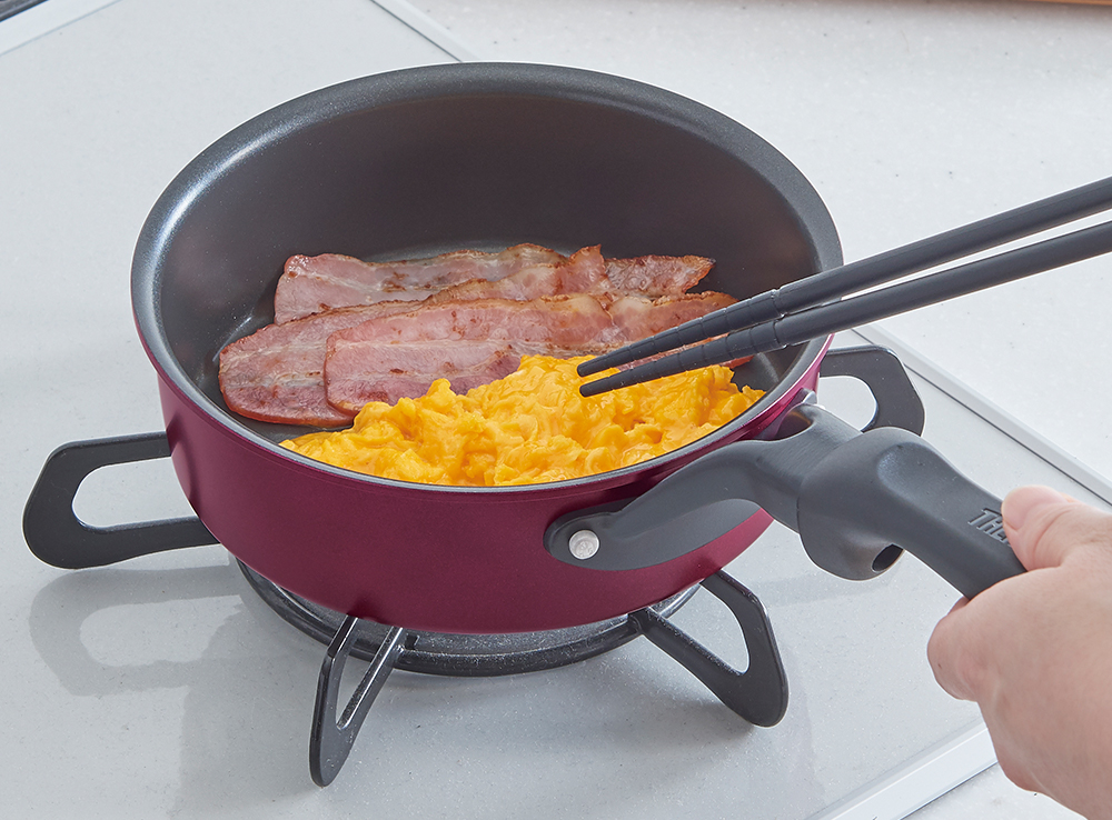 握りやすいハンドルは、取っ手を熱源から遠ざける設計。より安心して使えます。