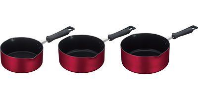 IH・ガス火両用、両サイドに注ぎやすく液だれしにくい注ぎ口がついた片手鍋。3サイズ展開。
