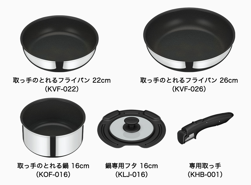 取っ手のとれるフライパン5点セットFA/KSF-5A