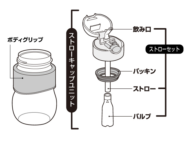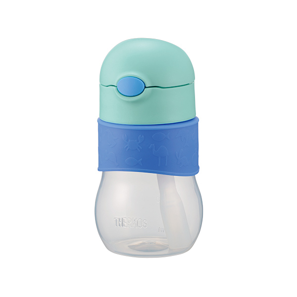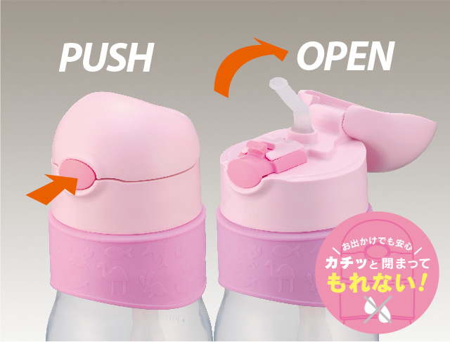 ワンタッチ・オープンですぐに飲めるストローマグ。小さなお子さまの手でも持ちやすい、かわいい動物柄のシリコン製ボディグリップ付き。