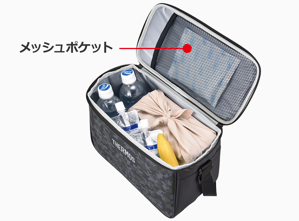 内側のメッシュポケットに保冷剤を入れると、さらに保冷効果がアップします。