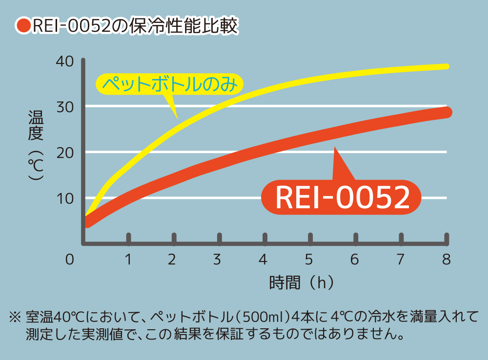 室温40℃の時のペットボトル単体との比較では明らかに保冷力の違いが。