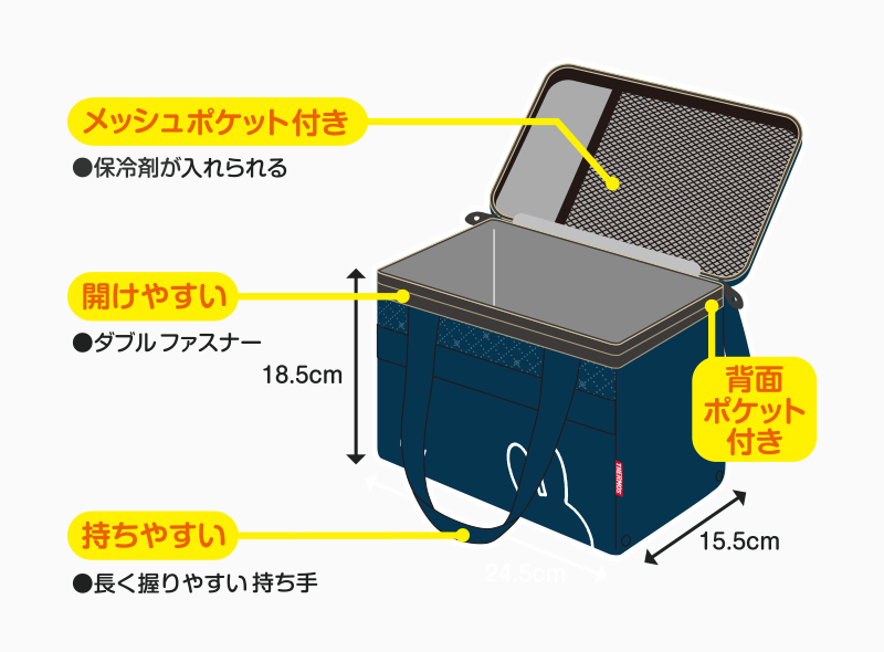 ブルー基調のシンプルなミッフィーをあしらったソフトクーラー。アイソテック5層断熱構造の高い保冷力。