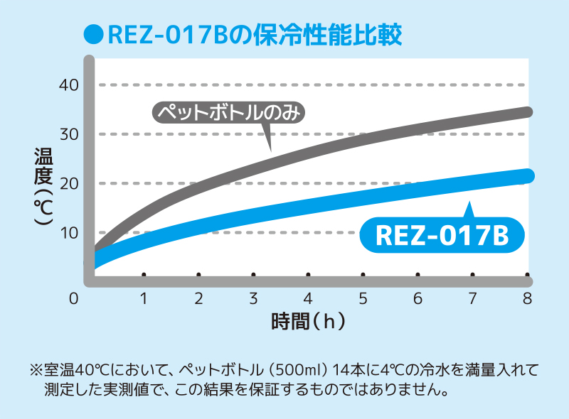 室温40℃での保冷性能比較では明らかに保冷力の違いが。※1