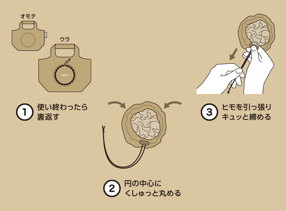 たたみ方を気にせず、くしゅっと丸めるだけでOK!