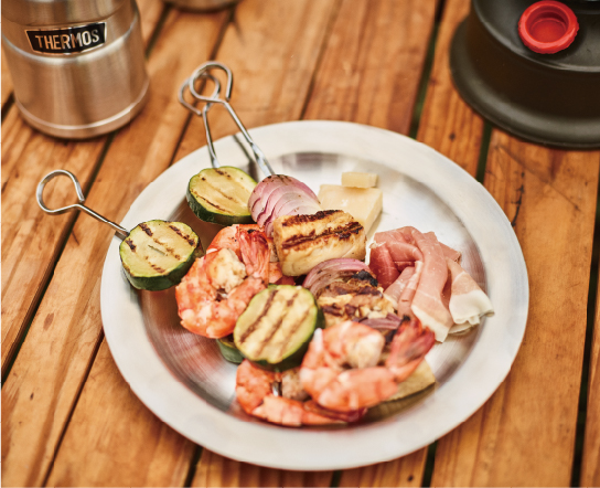 出来立ての料理を並べたら、今夜のディナーが完成。木々のざわめき、川のせせらぎをBGMに囲む、スペシャルな食卓。とびきりの笑顔をスパイスに、料理の味わいもいっそう深くなっていく。