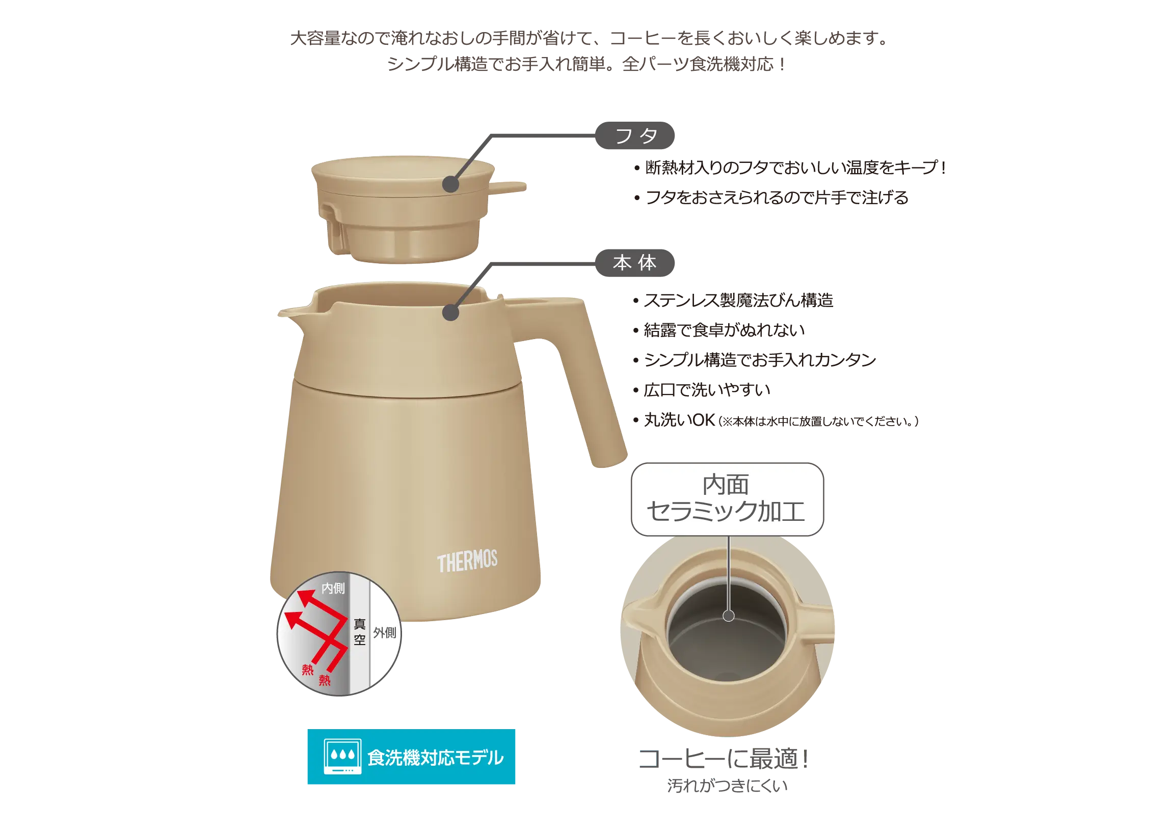 内面セラミック加工で汚れがつきにくく、コーヒーに最適