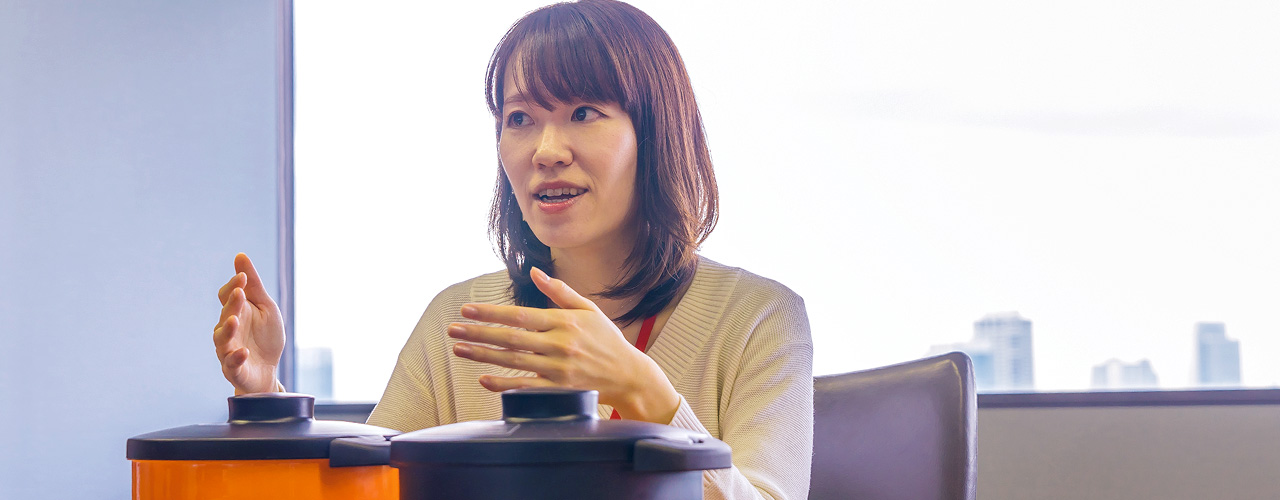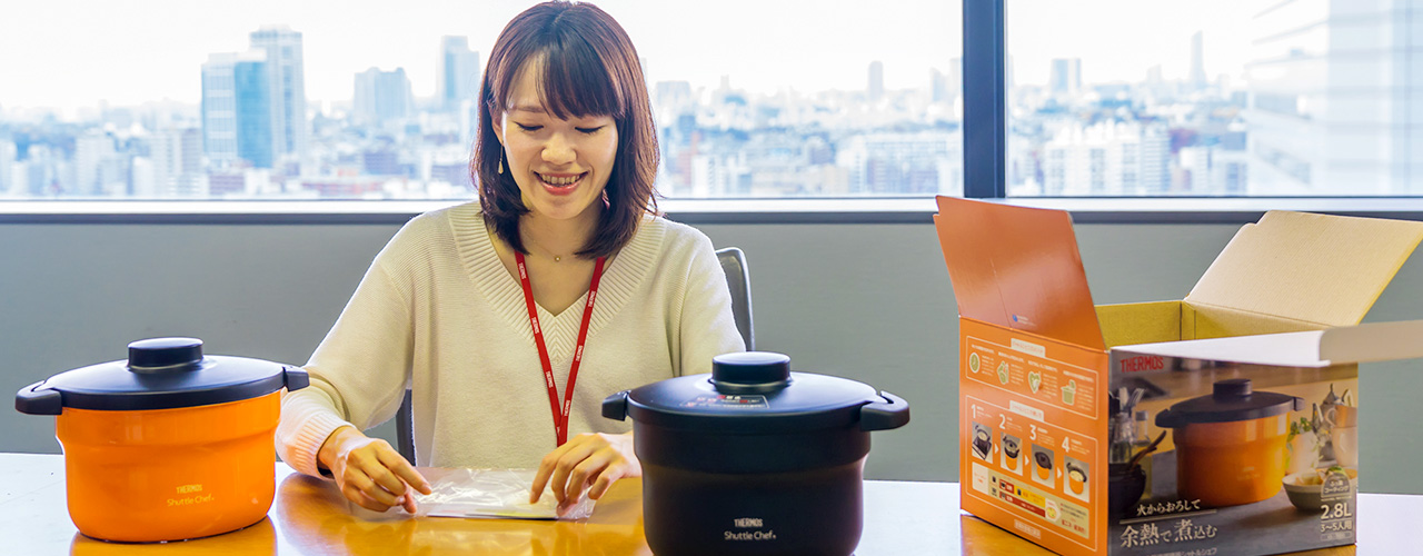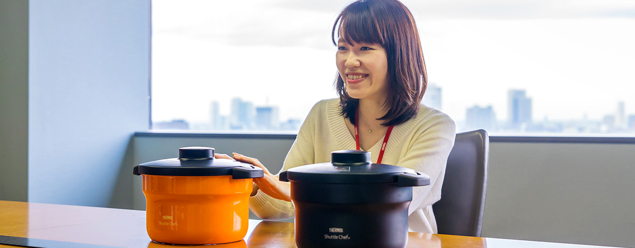 サーモス株式会社に新卒で入社し、現在8年目になります。1年目は管理系の部署におりました。2年目から商品企画の部署に配属になりまして、現在はシャトルシェフを始めとした調理系の商品の担当をしています。