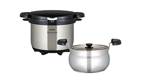 シャトルシェフは、短時間火にかけた調理鍋を保温容器で丸ごと保温し、余熱で食材に火を通す『保温調理』ができる調理器具です。