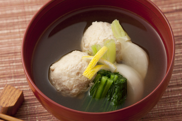 はんぺんが入るふわふわ鶏団子。旨味アップのスープです。