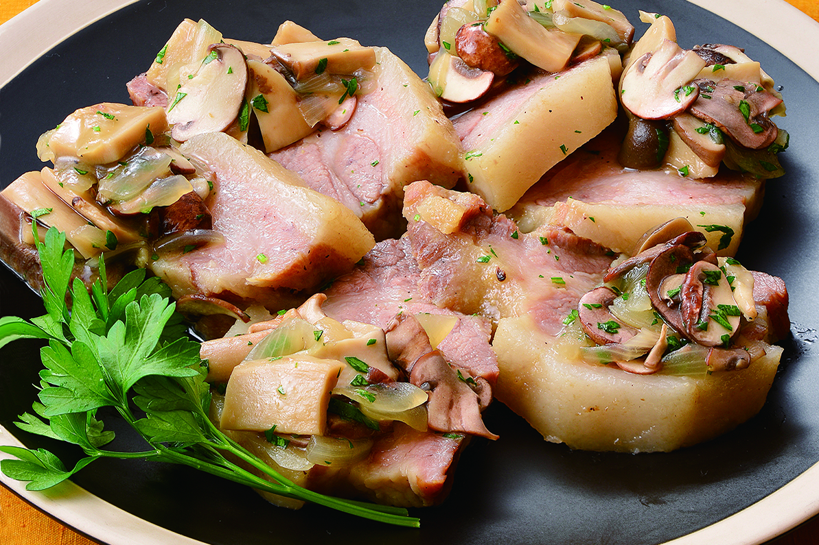 ボイルポークのキノコソース添え