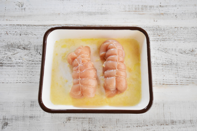 キッチンパーパーをかぶせ、調味液をなじませ、ピッタリとラップをして冷蔵庫で一晩(8~12時間)寝かせる。