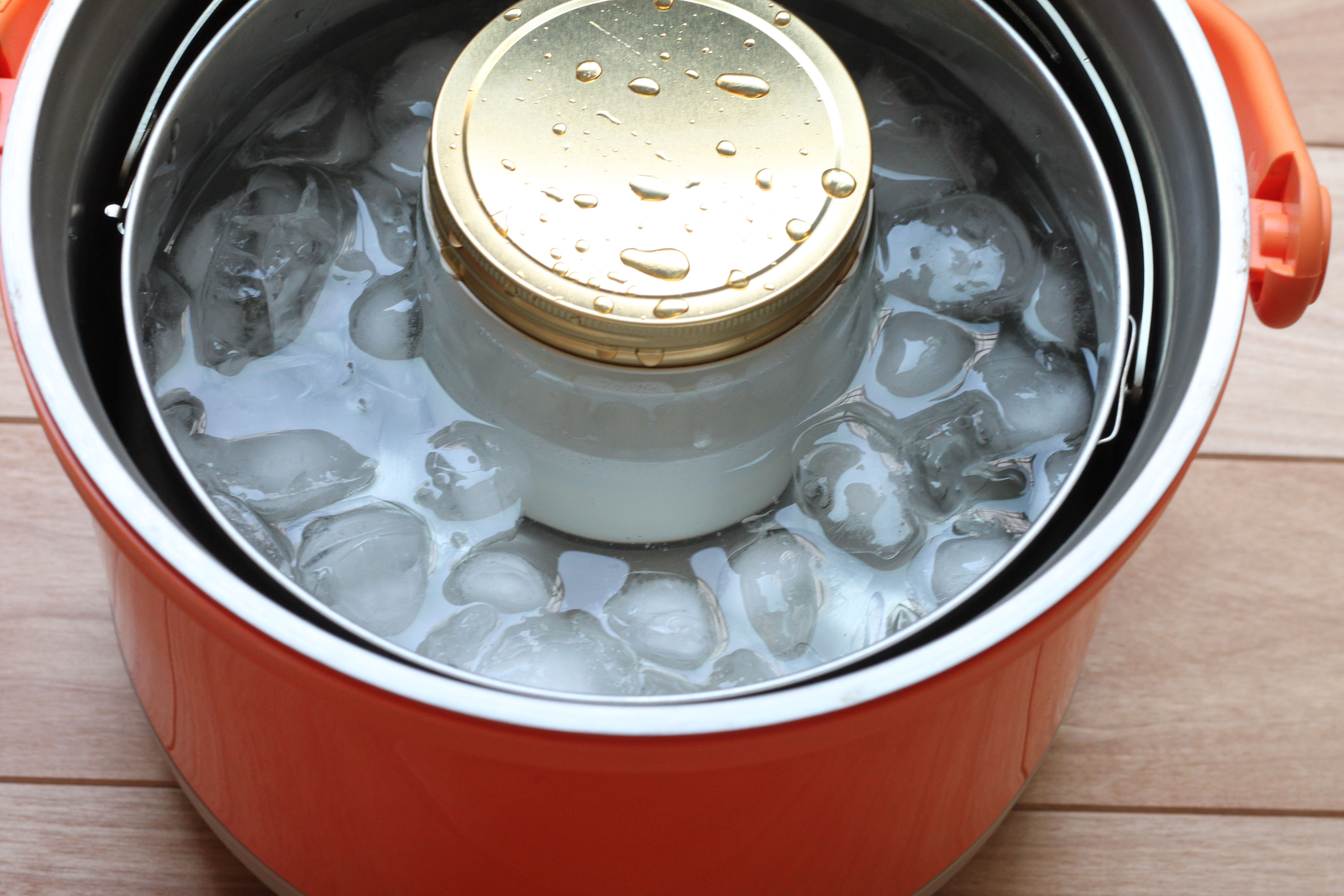 調理鍋に氷水をはり、2を入れ、保温容器にセットして30分保冷する。