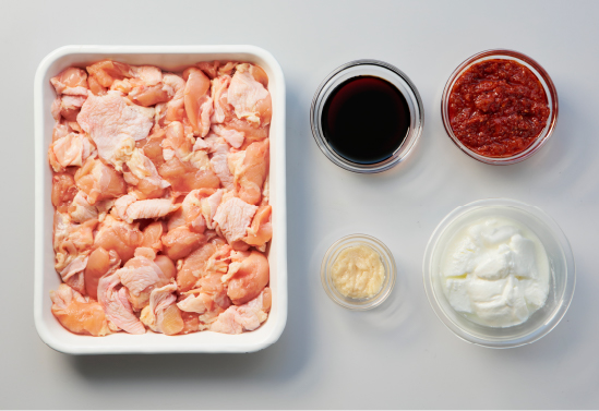 ヨーグルトとトマト缶の程よい酸味と、ハリッサのスパイシーな香りが食欲をそそる一皿です!