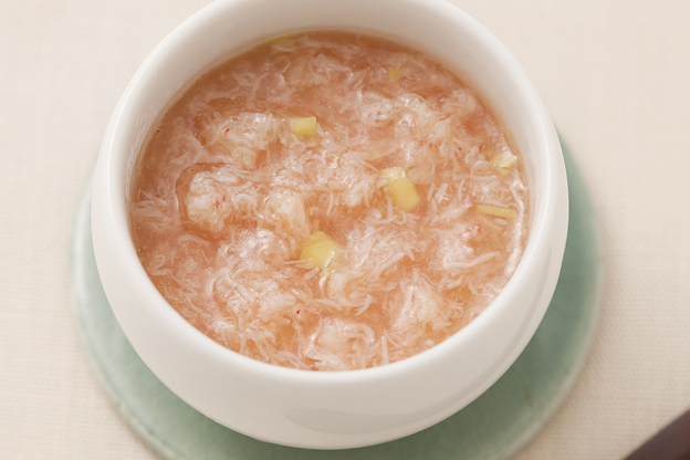 柔らか茶碗蒸しの上にかに玉あんをのせます。冷やしても美味。ホームパーティーにも。