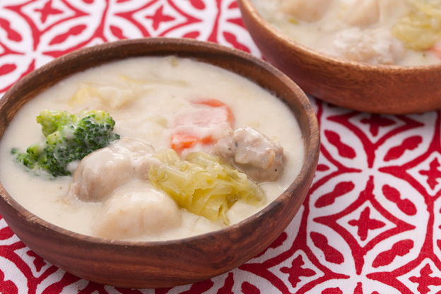 春キャベツとホタテの米粉クリームシチュー