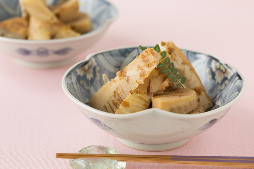 たけのこは穂先を切り、調理鍋にぬか、赤唐辛子と共に入れて火にかけ、沸騰したら10分加熱する。保温容器に入れて1時間以上保温し、根元に串を挿してすっと入る位やわらかくなったら取り出して皮をむく。