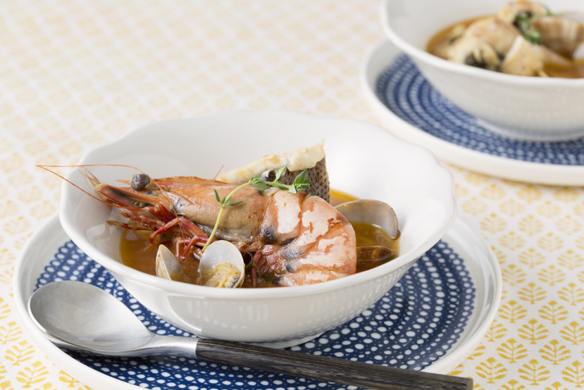 フランスの漁師料理ブイヤベース。残った煮汁で翌日はリゾットやパスタソースも作れる優れものです。