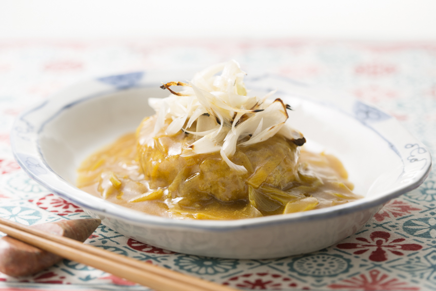 和風のお蕎麦屋さんで出てくるような優しい味わいのカレー南蛮風のハンバーグです。