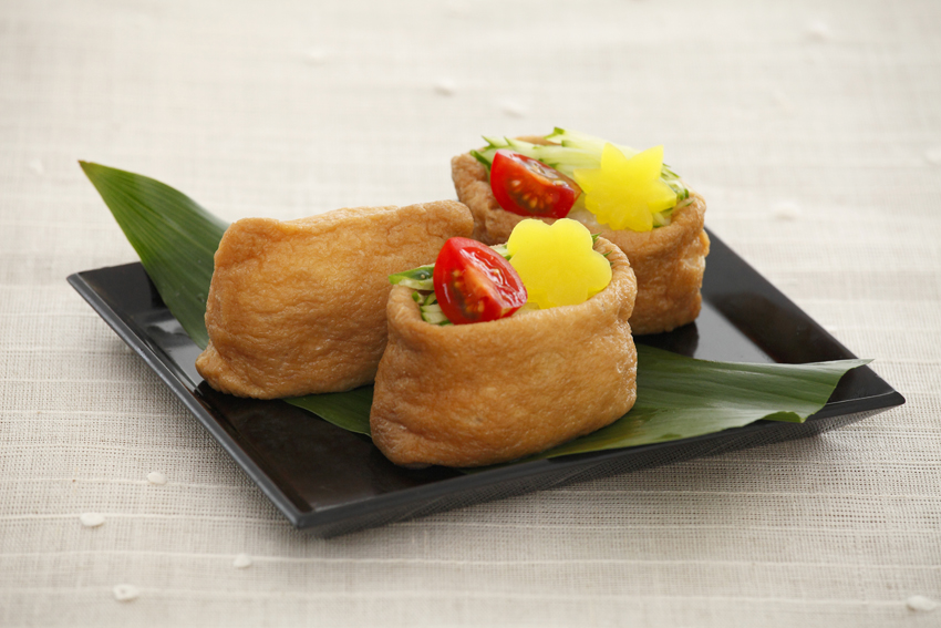 行楽弁当に華やかに飾っても楽しいです。ゆっくり煮含めたいなり揚げは冷凍保存もできるので、毎日のお弁当にもどうぞ。
