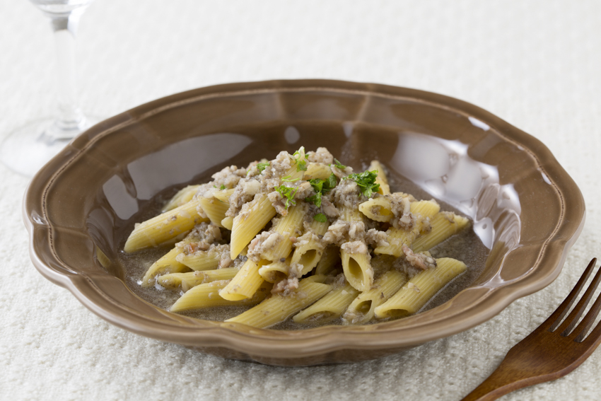 たっぷりのきのこを炒めてだしとペンネを一緒に入れて保温するだけ。きのこの旨みがしっかりのお手軽パスタです。