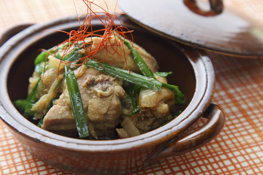 ぶつ切り肉から出る旨みとにんにく・しょうがの香りで奥深い味わいに。風邪予防効果のあるニラもたっぷりと入れる。