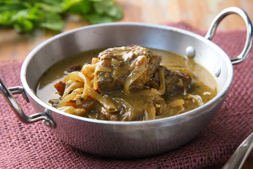ココナッツミルクとスパイスの香るお料理。保温調理器でじっくりと火を入れます。