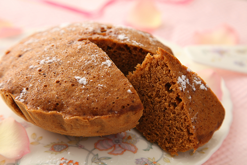 器に盛り、粉砂糖や花びらで飾って切り分けていただく。