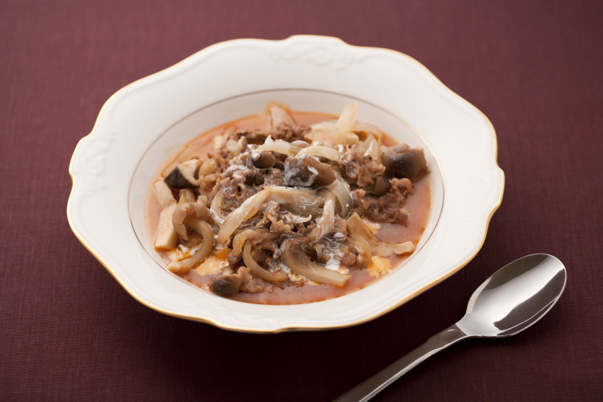 牛肉の薄切りをきのこと共に煮込んだ、誰もが好きなご馳走メニューです。