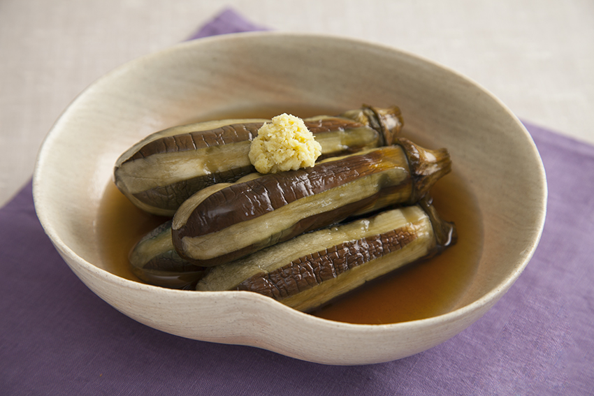 なすに昆布だしの煮汁がたっぷりと染み込んだ優しい味わいの一品。