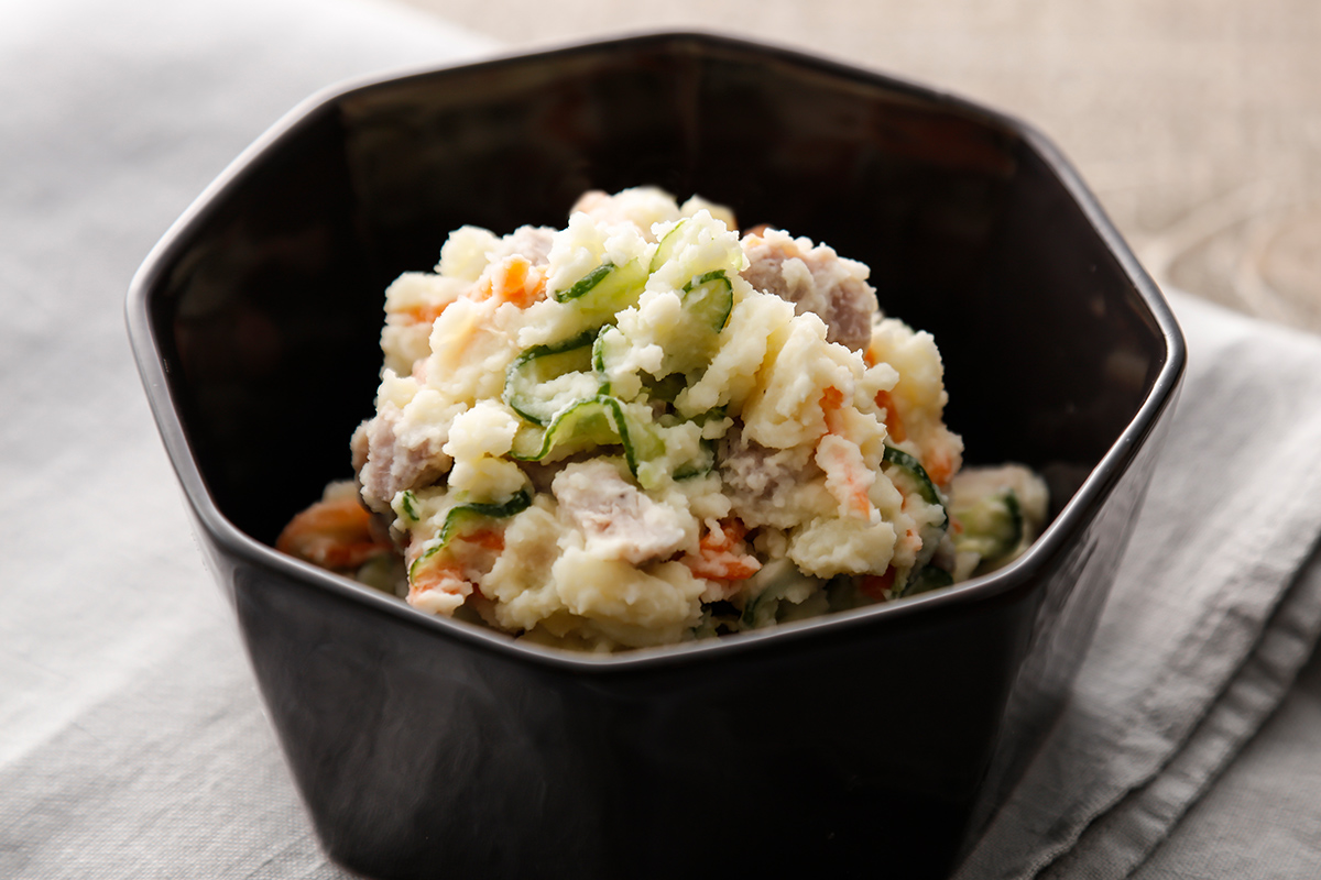 塩豚のうまみのしみこんだじゃがいもを使うから、さらにおいしく。