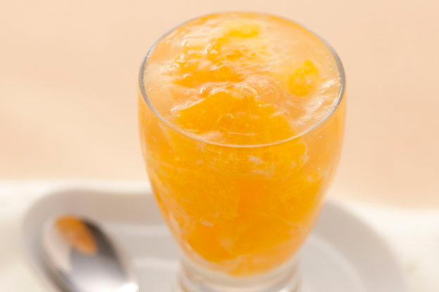 みかんを優しい味わいのシロップでじっくり煮込み、そのままゼリーに。ビタミンCたっぷりのゼリー。