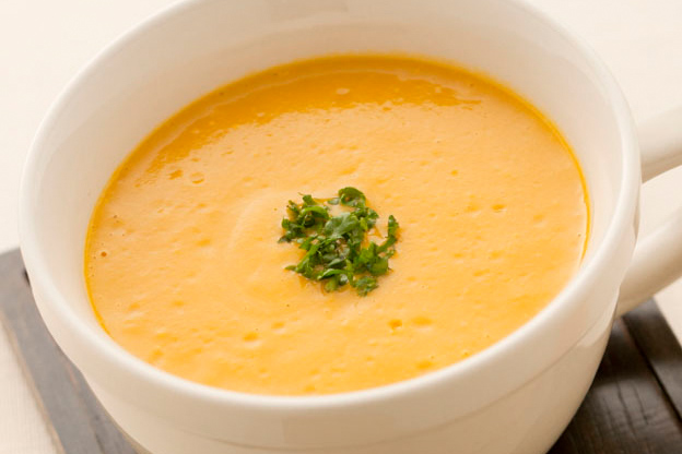 かぼちゃや野菜をじっくり煮込むので、とても甘いスープになります。豆乳を加えてヘルシーに。