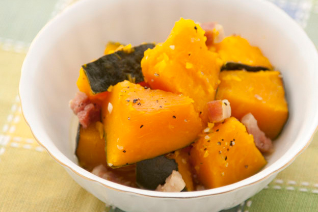 かぼちゃをベーコンと共にさっぱり洋風に煮ました。カロテン豊富なかぼちゃをたっぷり食べられる一品です。